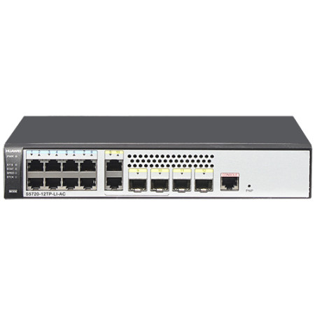 [S5720-12TP-LI-AC] Huawai Switch 8 Ethernet 10/100/1000 ports,2 Gig SFP and 2 dual-purpose 10/100/1000 or SFP,AC 110/220V