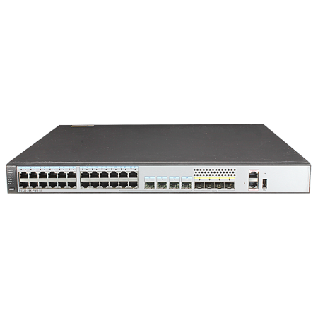 [S5720-28X-PWR-SI-DC] Huawai Switch 24 Ethernet 10/100/1000 PoE+ ports,4 of which are dual-purpose 10/100/1000 or SFP,4 10 Gig SFP+,with 650W DC power
